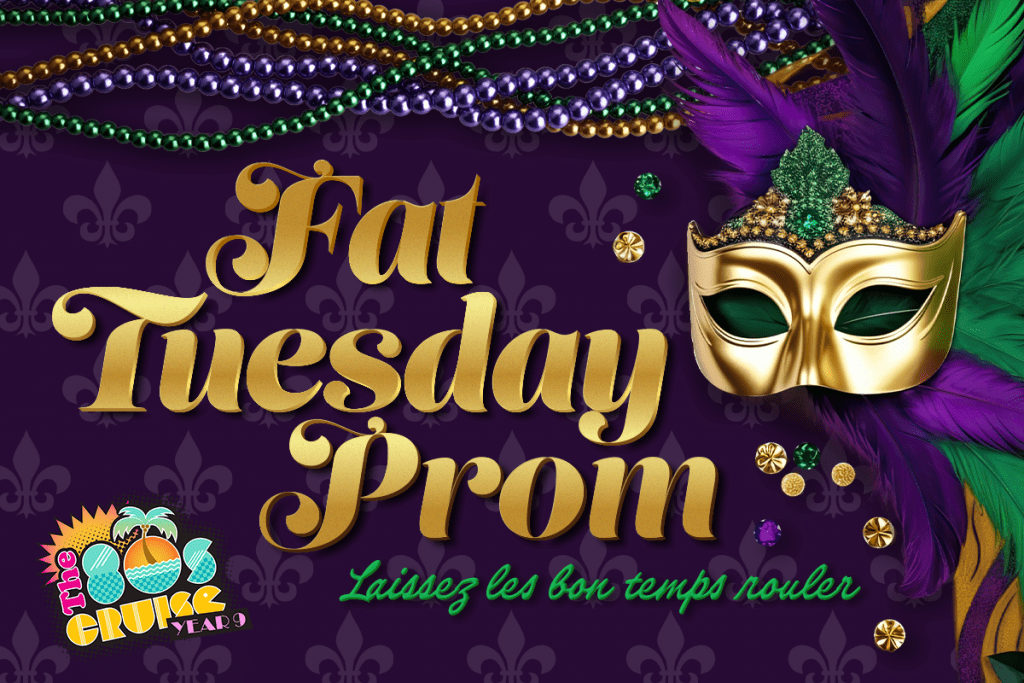 Mardi Gras meets 80s prom in this vibrant and over-the-top theme night! Think masks, beads, and all things flashy. It’s the perfect fusion of 80s high school nostalgia and New Orleans party vibes. So, dust off your prom attire, grab a mask, and get ready to crown the King and Queen of Fat Tuesday Prom!